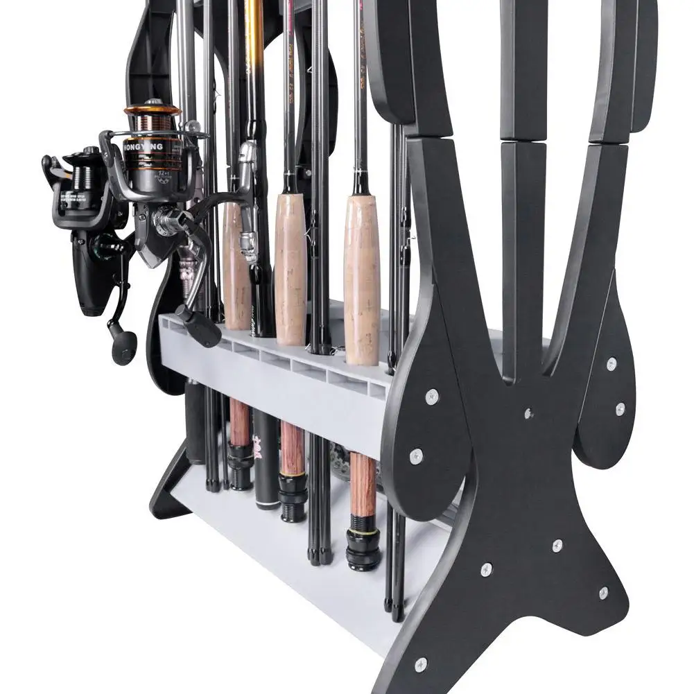 Big Deal 16 Slots Detachable Fishing Rod Storage Rack Holder Durable Plastic Fish Shaped Fishing Pole Displa